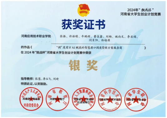 2024年09月,获得2024年“挑战杯”河南省大学生创业计划竞赛银奖