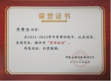 2023年05月,获得永利集团88304官网集团2023年度军训标兵