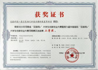 2023年8月第九届中国国际“互联网+”大学生专利创新创业大赛河南赛区选拔赛职教赛道一等奖