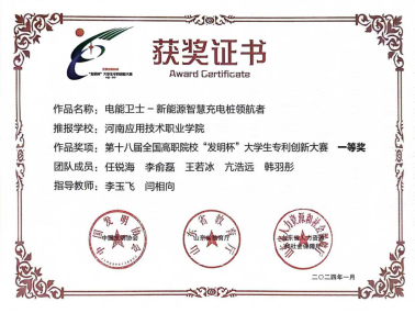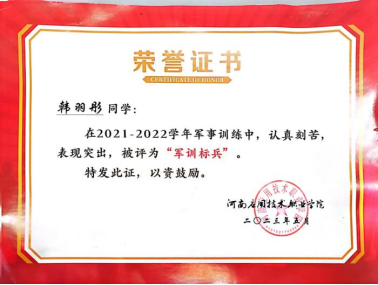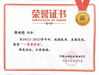 韩羽彤,女,汉族,中共预备党员,2022级造价2203班团支书。曾荣获第十八届全国高职院校“发明杯”大学生专利创新大赛一等奖、2023河南省“互联网+”大学生创新创业大赛河南赛区二等奖、校级一等奖学金、三好学生、军训标兵等荣誉。