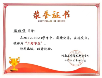 在学习上,不断学习专业基础知识,提高自身的修养,提高自身的综合素质,同时我也积极配合老师,完成老师布置的各项任务,努力学习,无挂科记录,通过不断的学习及努力,获得了校级一等奖学金和国家励志奖学金。