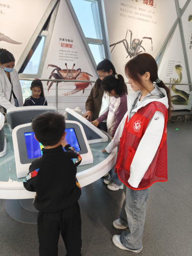活动期间,小筑志愿者们分布在科技馆的各个展区。在基础科学展区,志愿者们耐心地为小朋友们讲解物理原理。通过有趣的互动实验,让原本抽象的科学知识变得生动易懂。在航天展区,志愿者们则化身为“航天讲解员”,为参观者讲述我国航天事业的发展历程,一段段激动人心的航天故事,激发了大家对宇宙探索的无限向往。