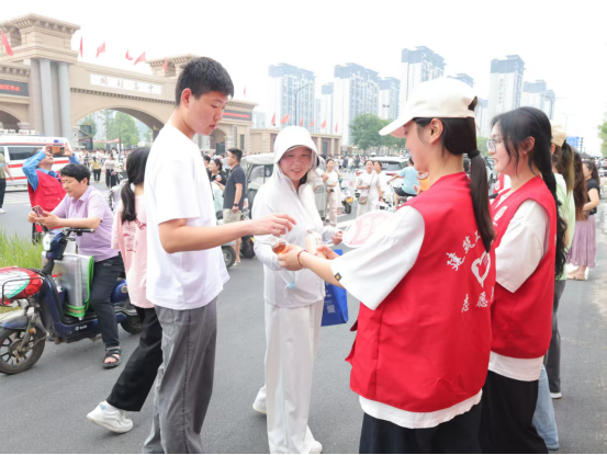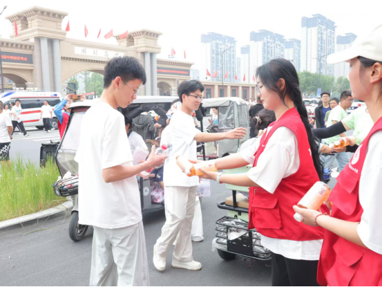 盛夏六月,高考的战鼓即将敲响!为缓解考场外家长的焦急情绪,同时致敬坚守岗位的警察、交警、医护人员、消防员以及环卫工人,小筑志愿服务队开展“乘风破浪,扶摇直上”主题志愿活动。活动现场,志愿者们为家长和工作人员送上饮用水、清凉扇,还有冰贴、降温喷雾等防暑物资,用细致的关怀驱散酷暑的燥热。一份清凉,一份安心,志愿者们以微小却真挚的行动,为高考护航注入温暖力量!