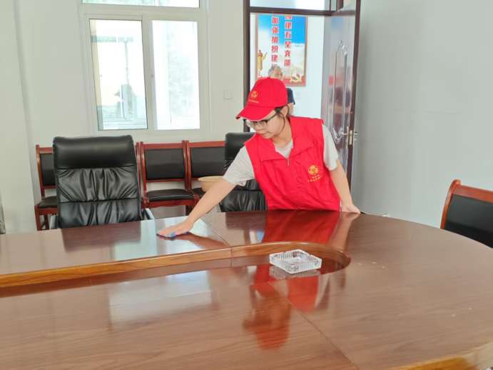 实践内容:2025年7月,在河南省林州市龙山区深沟村村委会打扫卫生,整理档案,书写宣传稿。