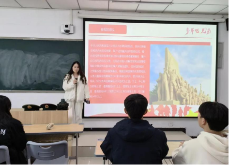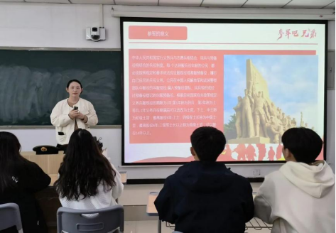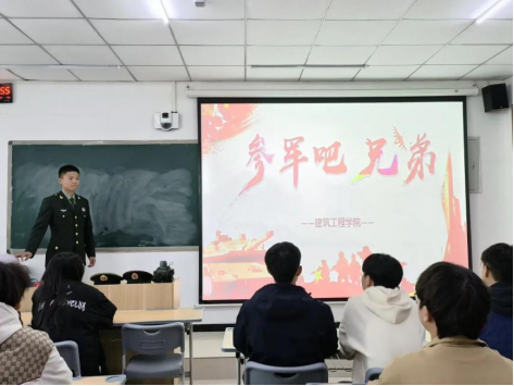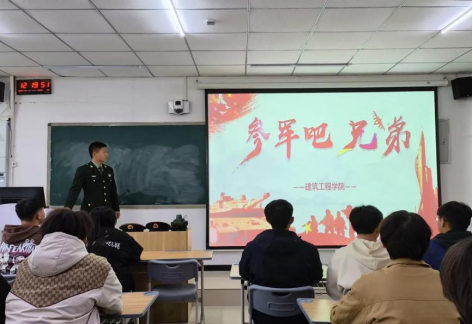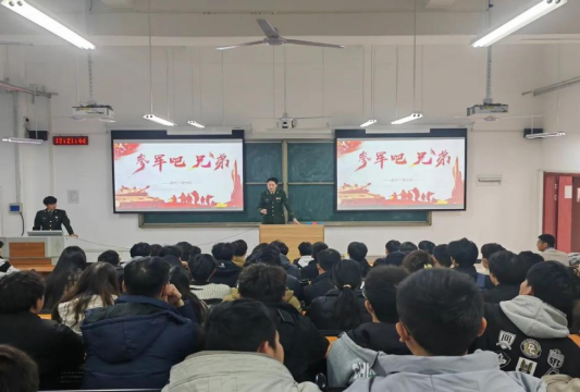 会上,宋雅雯对2024年征兵流程进行详细解读,介绍了大学生入伍的基础条件、应征报名流程以及入伍期间和退伍后的相关优惠政策,同时对大学生参军入伍的政治荣誉、升学就业、经济补贴、部队发展、考公考编等几个方面进行重点解读,鼓励大家参军入伍,报效祖国。林朝阳、杨连成、李相成、张强国几位退伍同学分别结合自身成长经历、入伍动机、军旅生活等方面,就同学们关心关注的入伍需要做哪些准备、如何快速适应军营生活,军旅生涯注意事项等问题进行探讨。刘亚娟重点强调了作为新时代的大学生,一定要勇担责任,当以脚踏实地,奋勇前行,积极响应党和政府的征兵号召,把个人理想抱负融入强军梦、中国梦,在部队中成长和锻炼自己,为国防事业贡献力量。