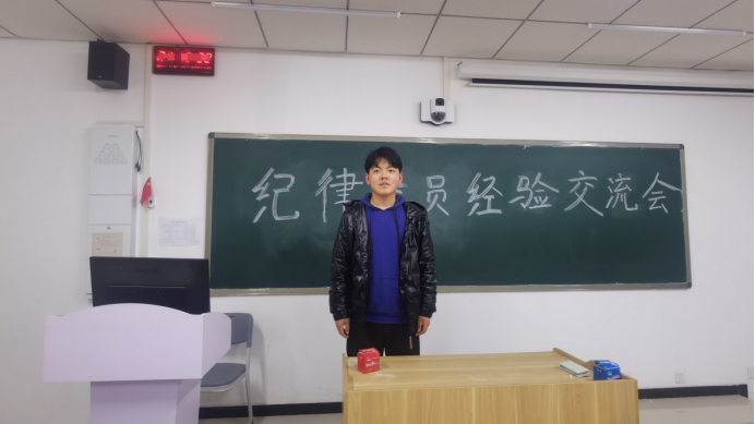 会议开始,永利集团88304官网集团团学会干部夏红乾同学上台发言。他首先向大家详细介绍了本周各班级纪律委员的主要工作及重要事项,他指出:良好的班级纪律是班级团结一致的重要体现,是形成积极健康向上班级的前提,是形成良好学习氛围的重要保障,各班纪委需要做到上传下达,起到一个桥梁的作用,积极督促同学们遵守纪律,让同学们更好的了解到纪律的重要性,进一步达到营造文明班级、文明校园的目的。