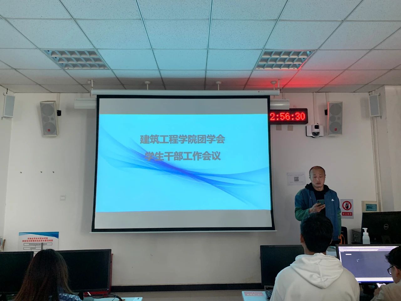 接下来,刘亚娟老师对近期学生干部工作做了详细的安排,大家一定要积极主动、严于律己,不骄不躁,积极参加活动,在活动中展现自己,提高自己,发挥好学生干部模范带头作用。