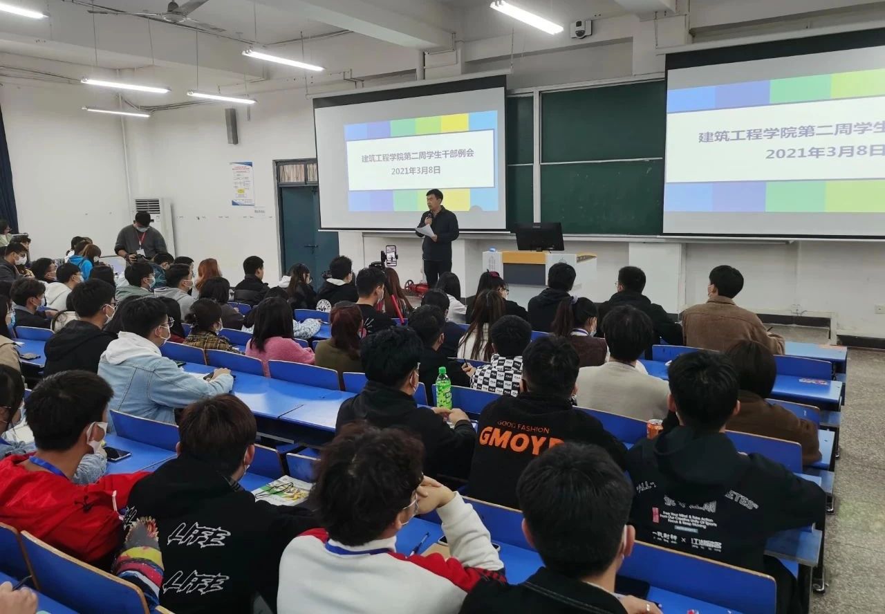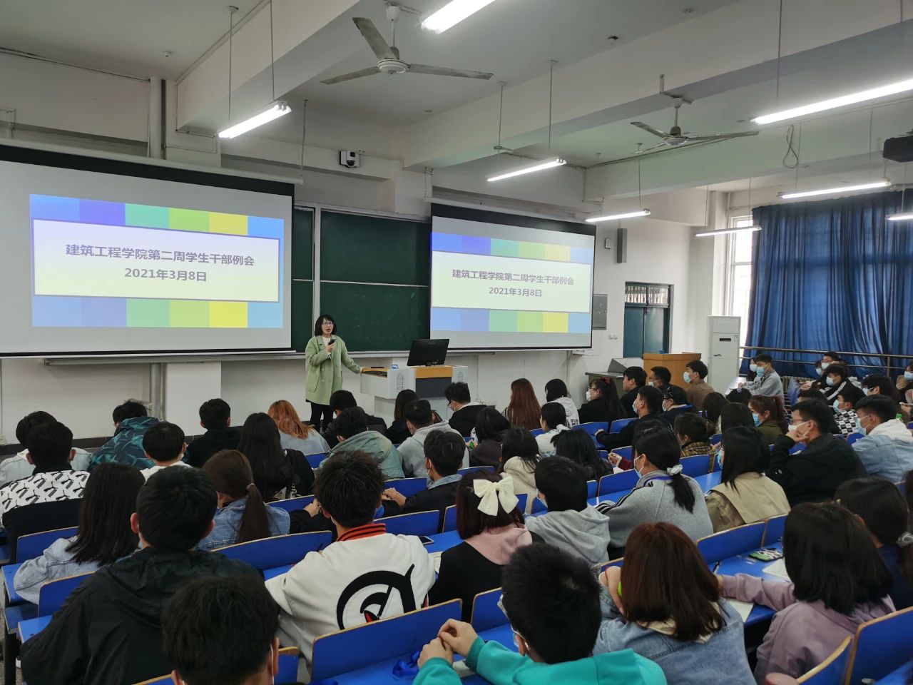 会议开始,刘高喜老师强调,作为学生干部必须带头遵守课堂纪律,增强学习和工作效率,在三月文明礼貌月活动中,大家一定要发挥好模范带头作用,带动身边同学的积极性。同时要注意宿舍安全及卫生问题,营造舒适的生活环境。