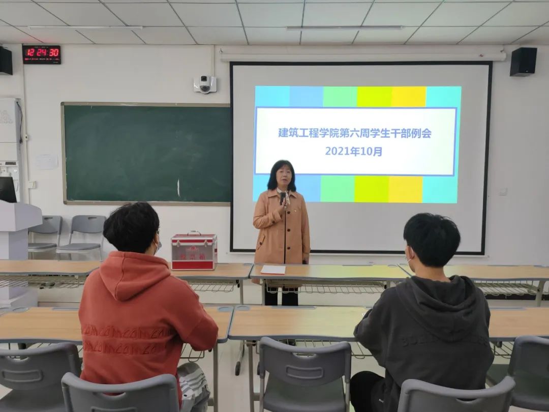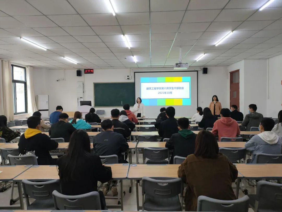 马春燕首先给同学们讲解了历届学生干部的先进案例,以此来鼓励大家统一思想、调整状态,迅速投入到工作岗位上。同时,对大家接下来的工作做出以下几点要求:第一,作为一名学生干部,我们必须严格要求自己,以身作则,为身边同学起到模范带头作用;第二,态度决定一切,大家要先把自己的态度端正,以平和的心态去面对一切,把每件事做到位;第三,做工作要注重方式方法,注重沟通,提高工作效率;第四,大家要团结一致,做到聚是一团火,散是满天星,做到吃苦在前享受在后,积极发扬建工拼搏精神。