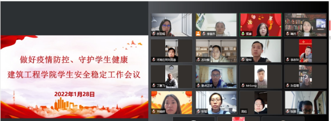会上,马春燕向大家传达了1月27日全省校园安全稳定工作视频会议精神及学校党委书记闫俊山,副校长刘振民关于校园安全稳定工作部署要求,并对近期学生安全稳定工作提出五点要求:一是提高思想政治站位,压实工作责任。大家要加强假期学生疫情防控的钉钉打卡、交通、饮食,防诈骗和心理等各项安全工作,特别对19级顶岗实习和20、21级不能回家过年学生加强安全教育管理。二是关爱重点学生,夯实安全基础。针对各班级建档立卡家庭贫困学生,单亲家庭学生,因疫情、水灾和雪灾造成家庭经济受影响的学生等重点人群进行关心关爱,用心用情做好帮扶,及时送去学院和辅导员的温暖。三是扎实做好学生心理疏导工作。各位辅导员要采取电话、视频通话等多种方式做好学生、家长的联系沟通工作。四是重视意识形态安全工作。假期中大家务必高度重视特殊群体的宗教信仰,预防邪教对学生的渗透。五是充分利用网络平台,全面加强对大学生的思想引领。利用学院微信公众号每日推送党史、微党课和疫情防控志愿服务身边“榜样”典型人物事迹,以及以冬奥会和冬残奥会为契机,加强学生理想信念教育和爱国教育。