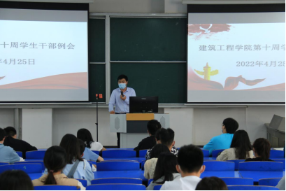 为进一步加强学生工作队伍建设和履职能力,提高学生干部的综合素质,更好为学生提供服务。2022年4月25日中午,永利集团88304官网集团在B102召开第十周学生干部例会,学院团总支书记刘亚娟,学工办主任刘高喜、辅导员李慧杰、孙雪理、部分学生会干部及各班班长和团支书参加会议。
