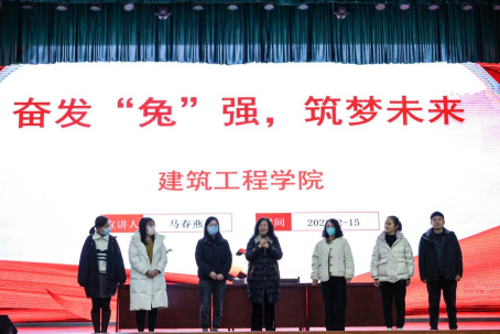 马春燕对2022年度同学们在学习和工作中取得的成绩表示充分认可,希望大家在新的一年再接再厉,一往无前!并围绕“疫散花开,关注自身发展;树立榜样,规划自身未来;暖心护航,筑牢安全防线”三个方面讲解了后疫情时代学子们如何尽快调整好心态回归常态化校园学习生活状态以及学院国家奖学金、国家励志奖学金获得者优秀事迹,寒假期间参与“返家乡”志愿服务活动先进个人事迹,勉励学子们“播下一个行动,收获一种习惯;播下一种习惯,收获一种性格;播下一种性格,收获一种命运”。