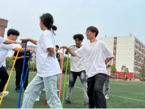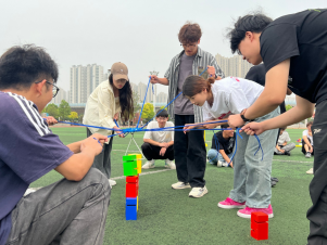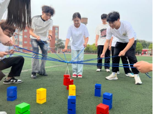 在整个游戏过程中,同学们既要保持平衡又要争分夺秒,过程紧张又刺激,极大提高了同学们的团队合作能力和心理抗压能力!