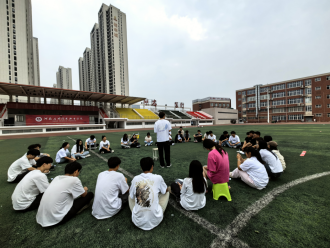 同学们目标一致,全力以赴,如旋风般在操场飞速前进,过程惊险又刺激!奔跑后感受到了多巴胺带来的快乐!