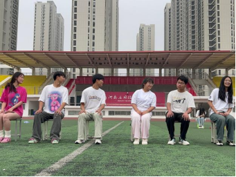 在经历四轮游戏之后,每轮游戏排名最后的队伍均进行了抽签,接受了趣味惩罚或才艺展示。微风不燥,天气正好。在激烈的竞争比赛之后,同学们围坐在操场,惬意地吹着凉风,欣赏着同学们的表演,爆发出阵阵欢笑。