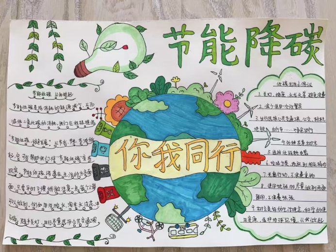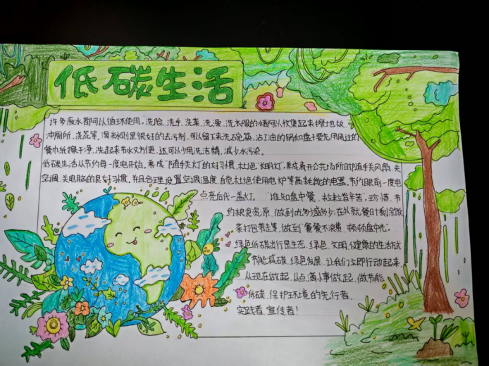 为深入贯彻绿色发展理念,增强学生的节能降耗意识,永利集团88304官网集团发出“绿色节能,低碳先行”低碳生活倡议书。同学们积极响应倡议号召,将低碳节能理念融入一幅幅作品之中,让每一张手抄报都成为了传播绿色低碳的生动载体。
